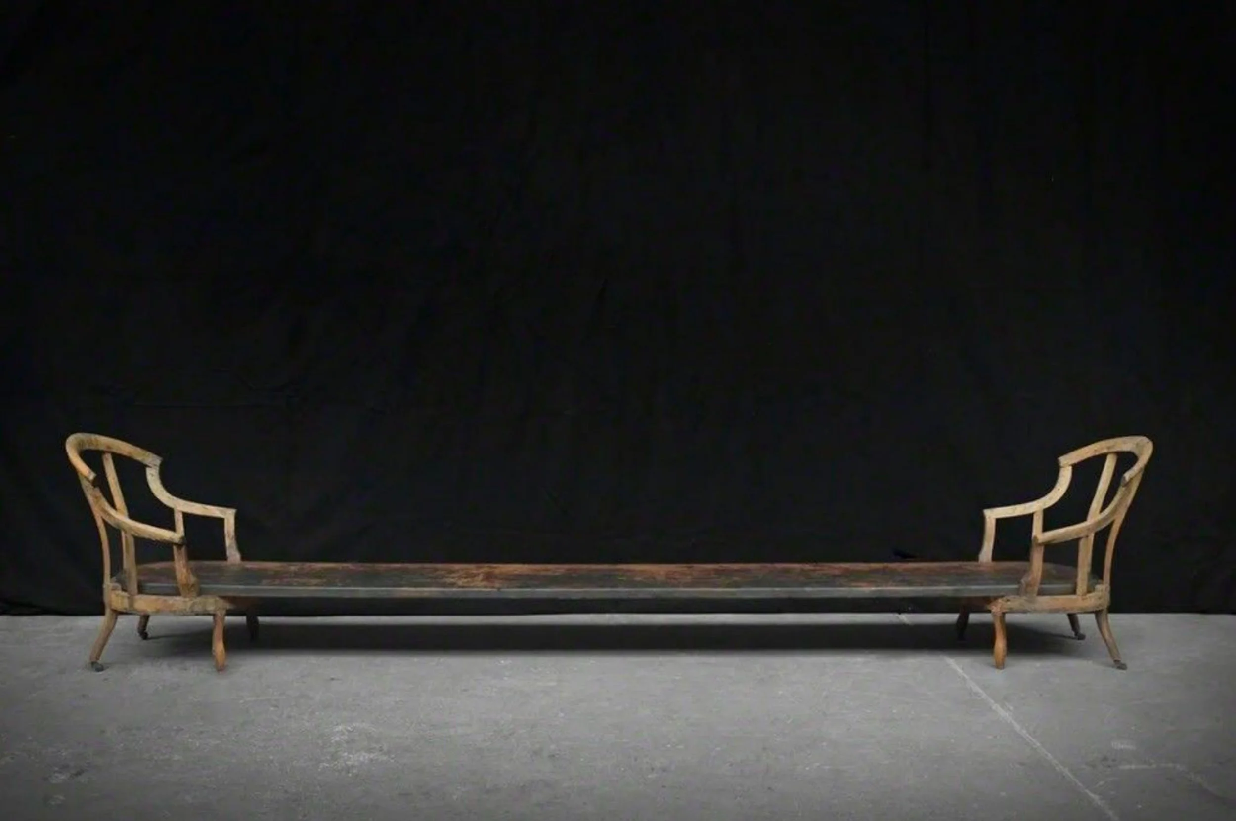 Additionally, these designers seem to propose an unorthodox relationship between their furniture and the human body, which is best exemplified in “Chesterfield Table,” from 2014. This piece is a combination of a reclaimed sofa, with a narrow and long piece of oak pew bench, and a block of concrete as the foot for the table. The pew is laid at the center of the seating area of the sofa, and protrudes out several feet, negating part of the sofa as seating, and resting on the block of cement. The user needs to solve the problem of how to use this piece: it is a puzzle. Either only two bodies will be seated, separated by the table area, or all surfaces are to be used as seating areas. The former suggests an unrelenting distance between the bodies. If all areas are to be used as seating, some of the bodies might have to be contorted to have successful communication with one another. Some bodies will rest facing their backs to some individuals, in this case also canceling out the interplay between some of the seated persons. A combination of the two previous alternatives is also possible, using the table as such in the areas closer to the sofa and as seating at the end of it. The use of this type of furniture requires a thinking and decision-making process.